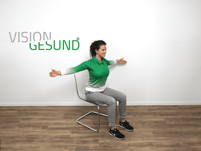 Überstreckung: Arme gestreckt neben dem Körper, Arme über die Seite nach hinten führen, Daumen ziehen nach hinten, Schulterblätter aktiv zusammenziehen